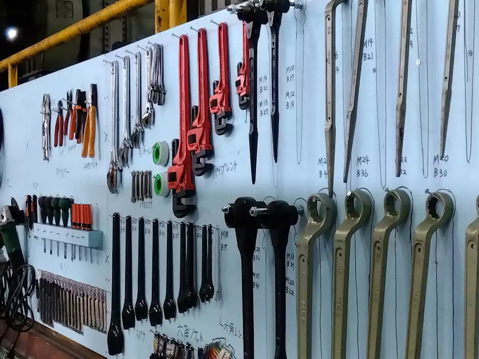 工具の名前、使い方、5S、ガス切断機の取り扱い、アーク溶接機の取り扱い等を先輩に習います。